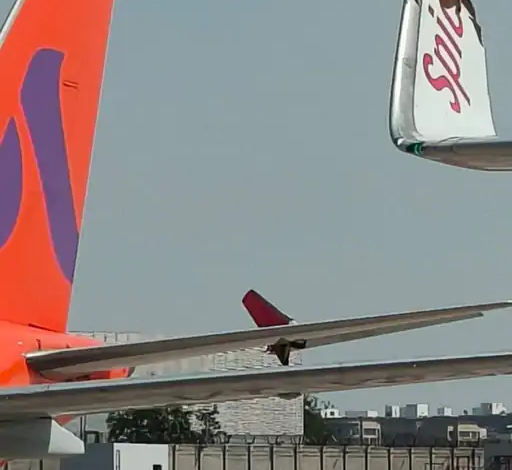 દિલ્હી એરપોર્ટ પર ગુરુવારે બપોરે 2 વાગ્યે સ્પાઈસજેટની ફ્લાઈટ પાર્કિંગ એરિયામાં ઉભેલા અકાસા એરલાઈનના વિમાન…