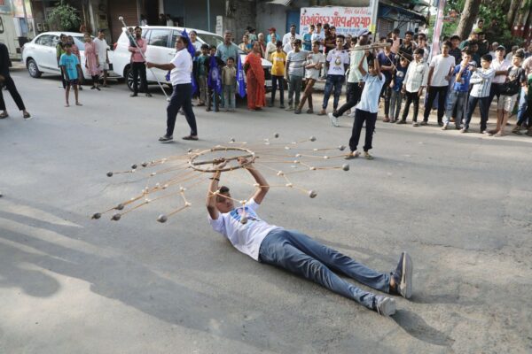 મુખ્યમંત્રીએ નગરયાત્રામાં સામેલ નાગરિક બંધુઓ, ટેબલો પ્રસ્તુતકર્તા યુવાનો અને વિવિધ વેશભૂષામાં સજ્જ ભૂલકાઓનું અભિવાદન ઝીલ્યું હતું.
