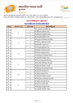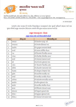 ચૂંટણી સમિતિની બેઠકમાં આગામી સ્થાનિક સ્વરાજની ચૂંટણીઓ માટે ભાજપના ઉમેદવારોના પસંદગીની પ્રક્રિયા પર ઊંડાણપૂર્વક ચર્ચા અને મંથન કરવામાં આવ્યું હતું. હવે ભાજપ દ્વારા ઉમેદવારોની પ્રથમ યાદી જાહેર કરવામાં આવી છે.