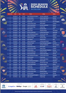 ભારતીય ક્રિકેટ કંટ્રોલ બોર્ડ (BCCI) એ IPL 2026 ના બીજા તબક્કાના શેડ્યૂલની જાહેરાત કરી છે. જોકે, બોર્ડે હજુ સુધી પ્લેઓફ અને ફાઇનલની તારીખો જાહેર કરી નથી. BCCI એ 70 લીગ મેચોનું શેડ્યૂલ જાહેર કર્યું છે, જે 24 મે સુધી ચાલશે. IPL ની 19મી સીઝન 28 માર્ચથી શરૂ થશે. બોર્ડે અગાઉ 20 મેચોનું શેડ્યૂલ જાહેર કર્યું હતું અને હવે બીજા તબક્કામાં BCCI એ લીગ તબક્કાની બાકીની 50 મેચોનું શેડ્યૂલ જાહેર કર્યું છે.