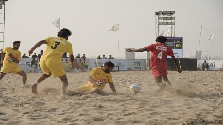 મનોહર બીચ એરેના ખાતે રમાયેલી Khelo India Beach Games 2026, બીચ સોકરમાં હિમાચલ પ્રદેશ પર દીવે જમાવ્યું પ્રભુત્વ