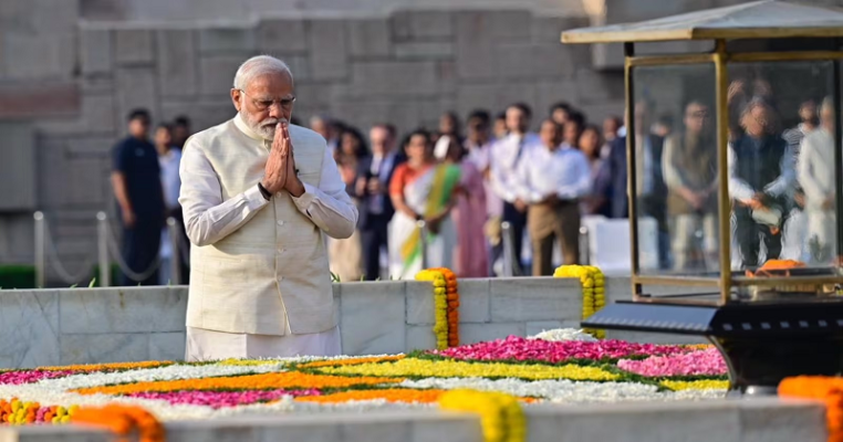 મહાત્મા ગાંધીની 77મી પુષ્ણતિથિ: રાષ્ટ્રપતિ-PM મોદીએ રાજઘાટ જઇને આપી શ્રદ્ધાંજલિ