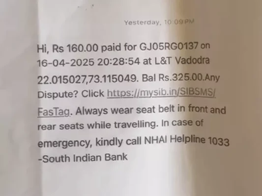 સુરતના અલથાણ વિસ્તારમાં આવેલા રઘુવીર સૈફ્રોન એપાર્ટમેન્ટમાં વિમલેશ તાતેડે રહે છે અને ફાઈનાન્સના વ્યવસાય સાથે સંકળાયેલા છે. તેમની પાસે બાઈક અને એક અર્ટિગા કાર છે. તેઓ મોટા ભાગે શહેરની અંદર ઘર સહિતનાં કામ માટે ટૂ-વ્હીલરનો જ ઉપયોગ કરે છે. તેમની કાર ઘણા સમયથી રઘુવીર સૈફ્રોન એપાર્ટમેન્ટના બેસમેન્ટ પાર્કિંગમાં જ રાખેલી છે. 16 એપ્રિલની રાત્રે 10 વાગ્યે તેમના મોબાઇલ પર મેસેજ આવ્યો કે વડોદરા ટોલ પ્લાઝા પરથી પસાર થતી વખતે ફાસ્ટેગમાંથી રૂ.160 કપાઈ ગયા છે. આ વાંચી તેઓ પરેશાન થઈ ગયા હતા.