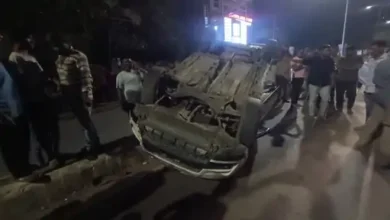 Vadodara: વડોદરામાં બહાર નીકળવું જોખમી; પૂરપાટ આવતી કારે પાર્ક કારને ટક્કર મારી, કાર પલટીને ડિવાઇડર પર ચડી